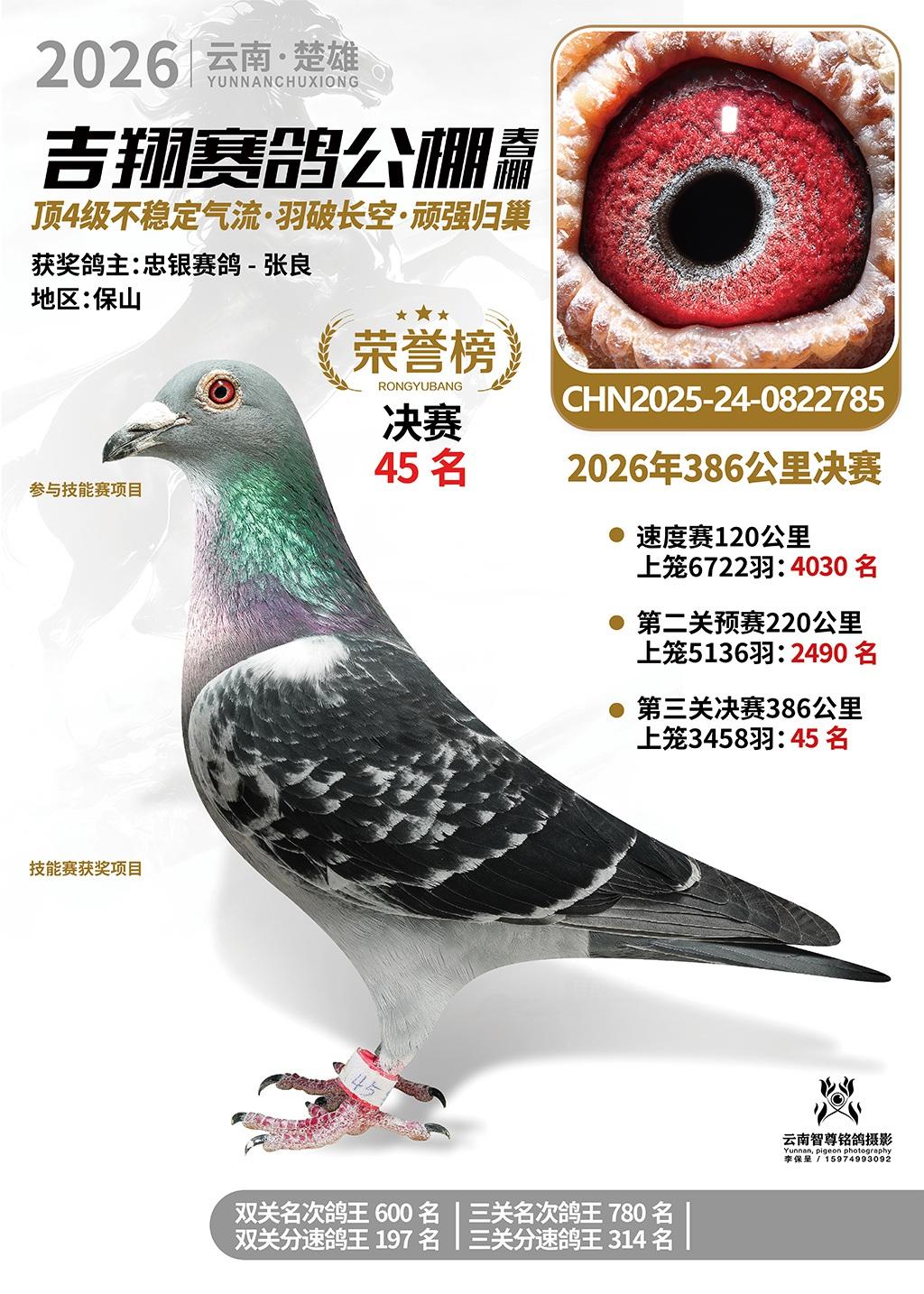 楚雄吉翔公棚(春棚)2026年386公里决赛获奖鸽欣赏