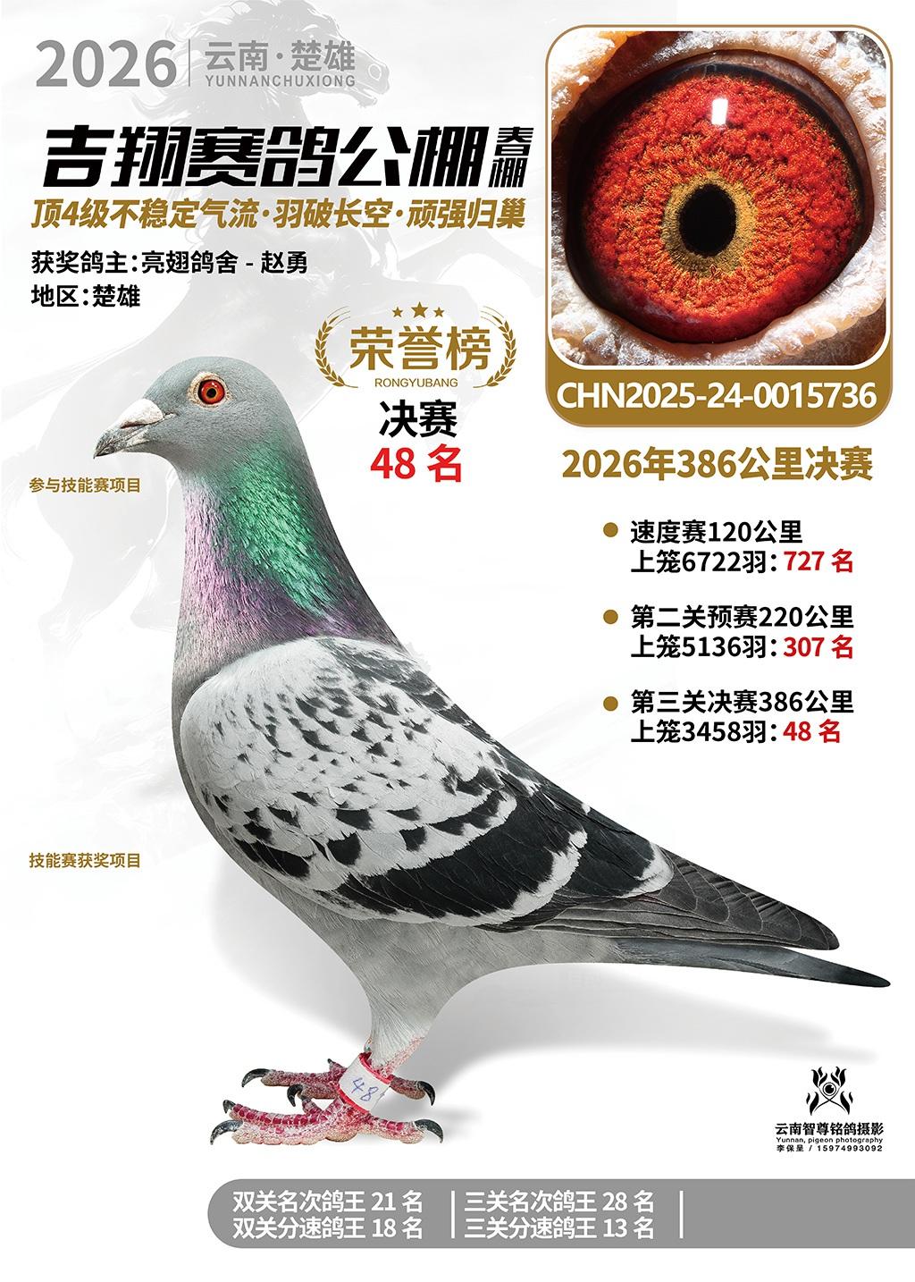 楚雄吉翔公棚(春棚)2026年386公里决赛获奖鸽欣赏