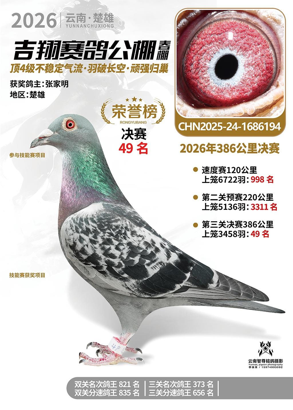 楚雄吉翔公棚(春棚)2026年386公里决赛获奖鸽欣赏