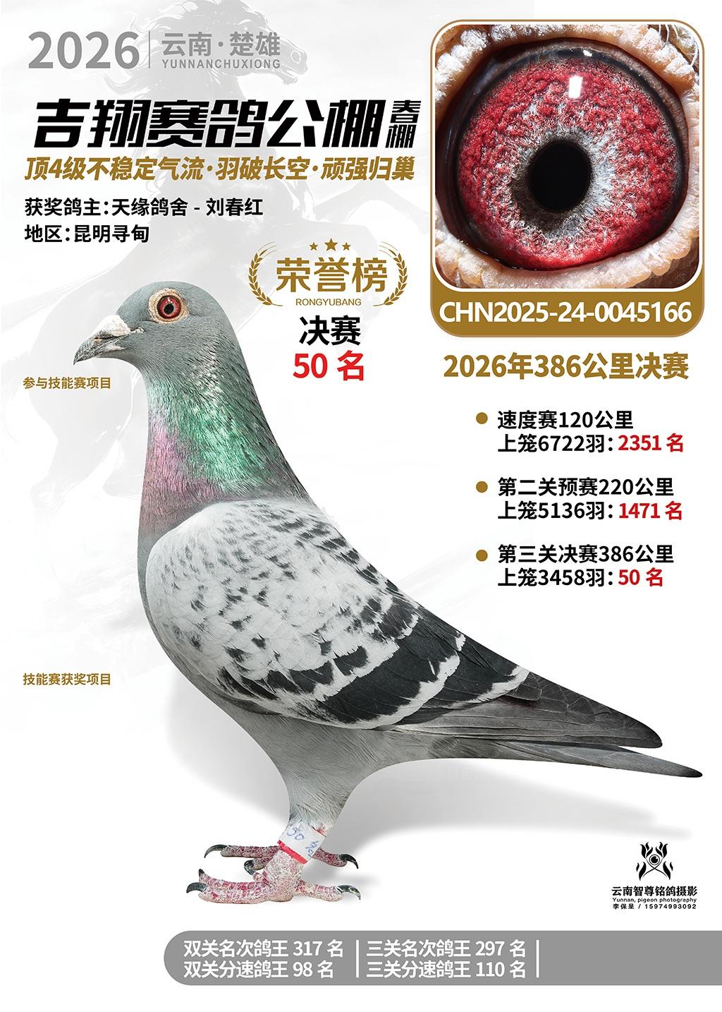 楚雄吉翔公棚(春棚)2026年386公里决赛获奖鸽欣赏