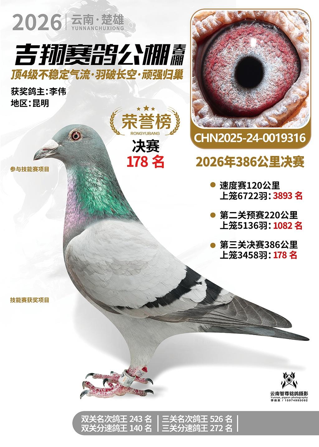 楚雄吉翔公棚(春棚)2026年386公里决赛获奖鸽欣赏