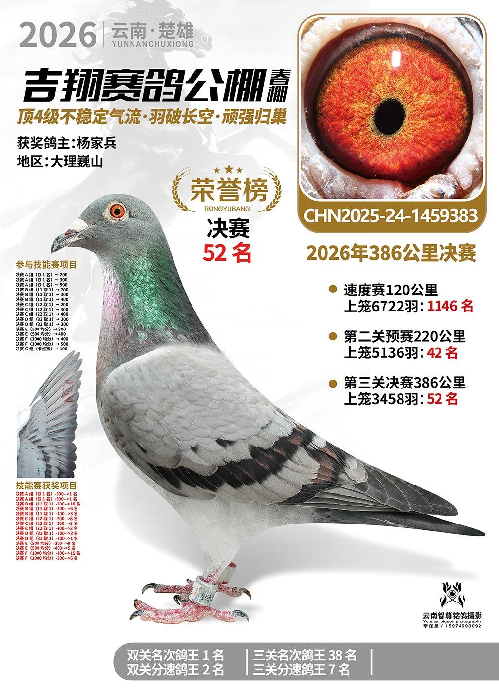 楚雄吉翔公棚(春棚)2026年386公里决赛获奖鸽欣赏