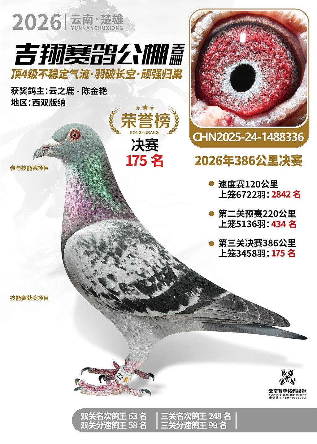 楚雄吉翔公棚(春棚)2026年386公里决赛获奖鸽欣赏