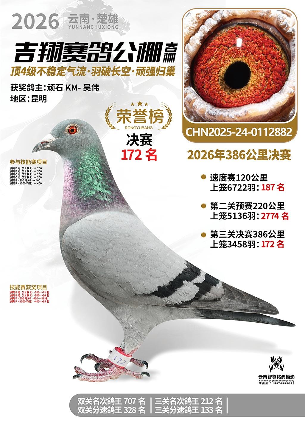 楚雄吉翔公棚(春棚)2026年386公里决赛获奖鸽欣赏