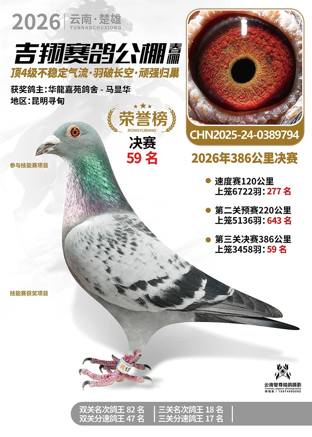 楚雄吉翔公棚(春棚)2026年386公里决赛获奖鸽欣赏