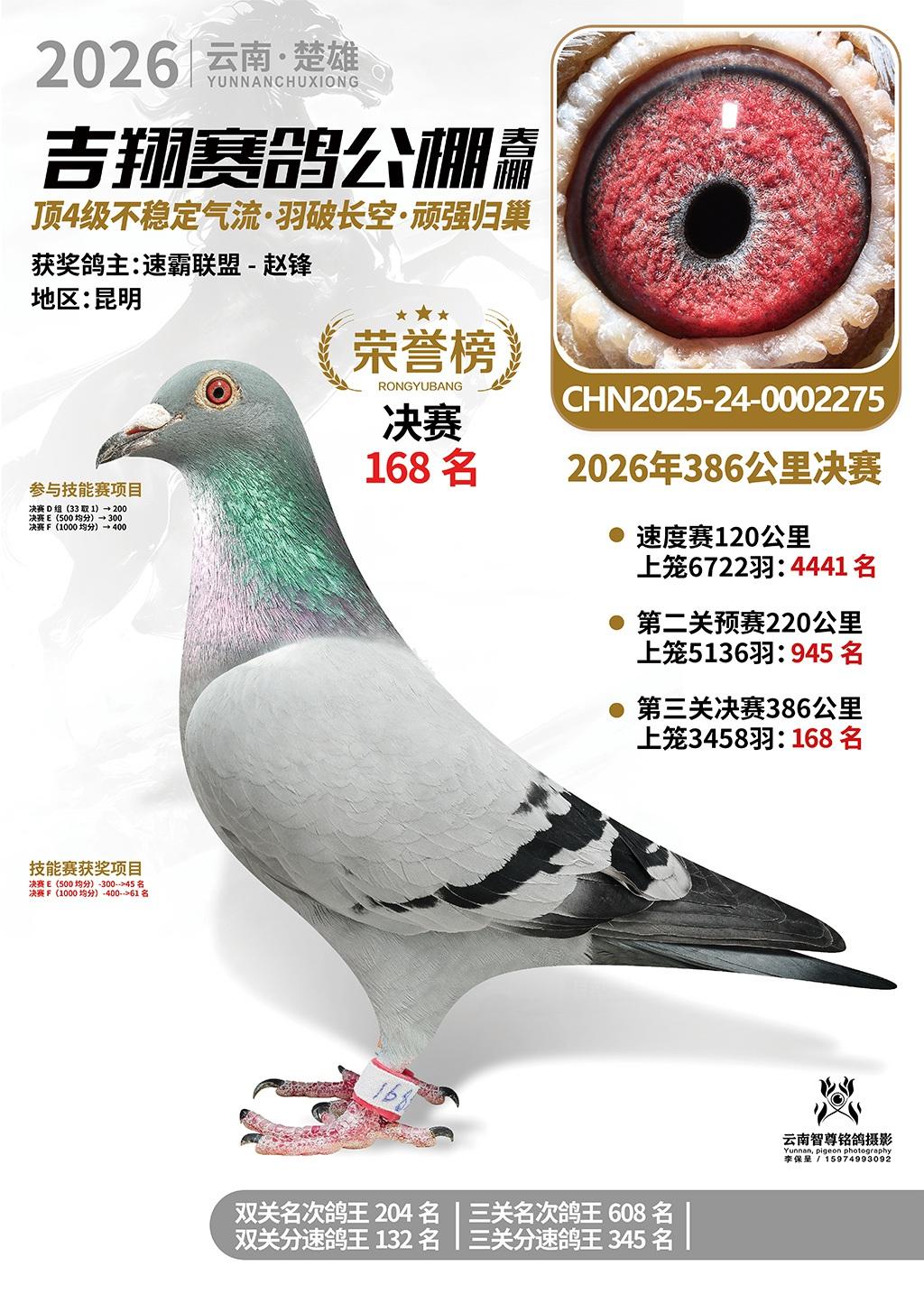 楚雄吉翔公棚(春棚)2026年386公里决赛获奖鸽欣赏