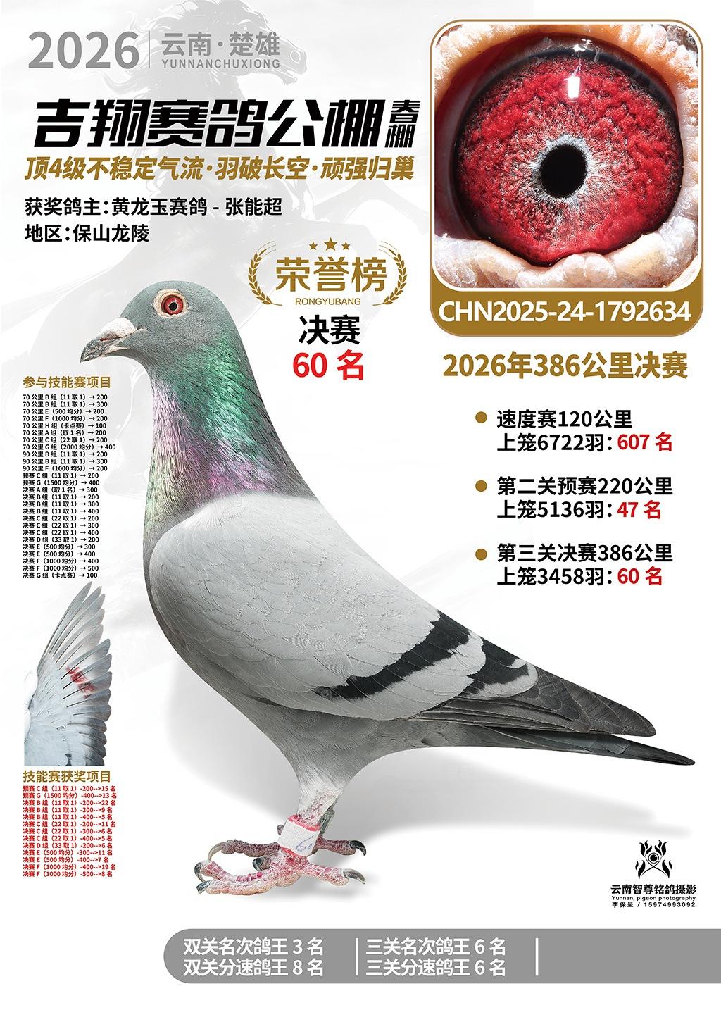 楚雄吉翔公棚(春棚)2026年386公里决赛获奖鸽欣赏