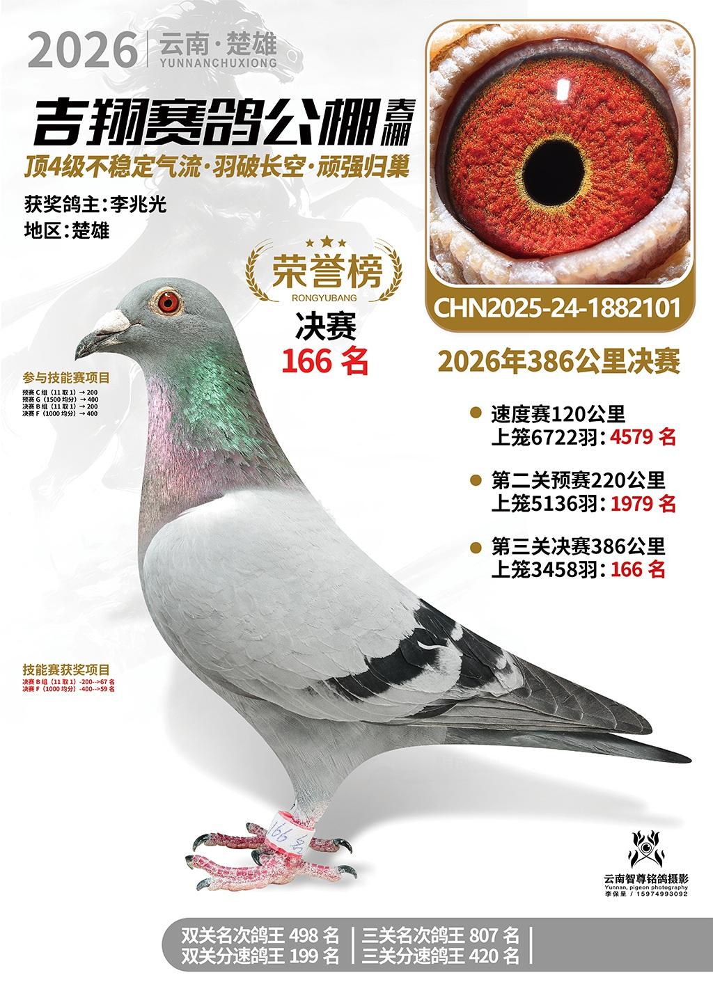 楚雄吉翔公棚(春棚)2026年386公里决赛获奖鸽欣赏
