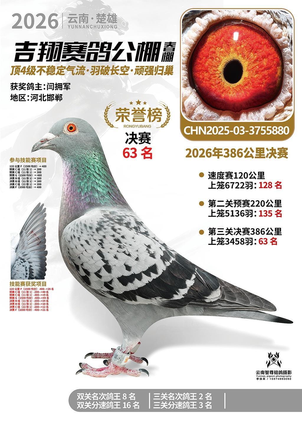 楚雄吉翔公棚(春棚)2026年386公里决赛获奖鸽欣赏