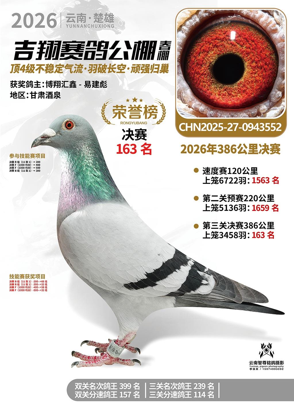 楚雄吉翔公棚(春棚)2026年386公里决赛获奖鸽欣赏