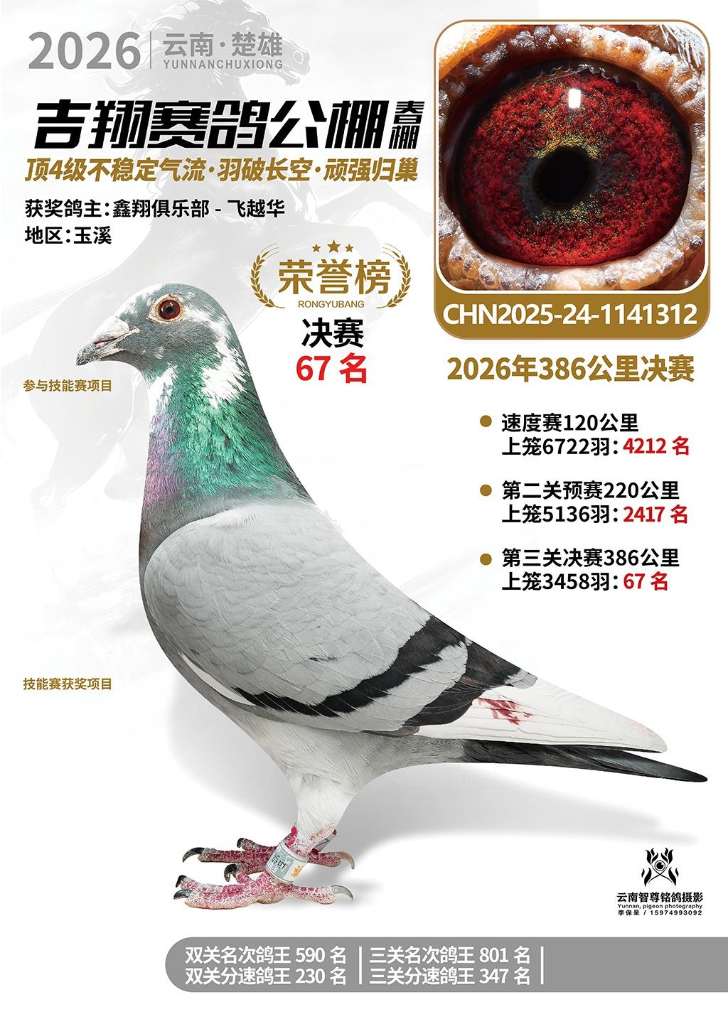 楚雄吉翔公棚(春棚)2026年386公里决赛获奖鸽欣赏