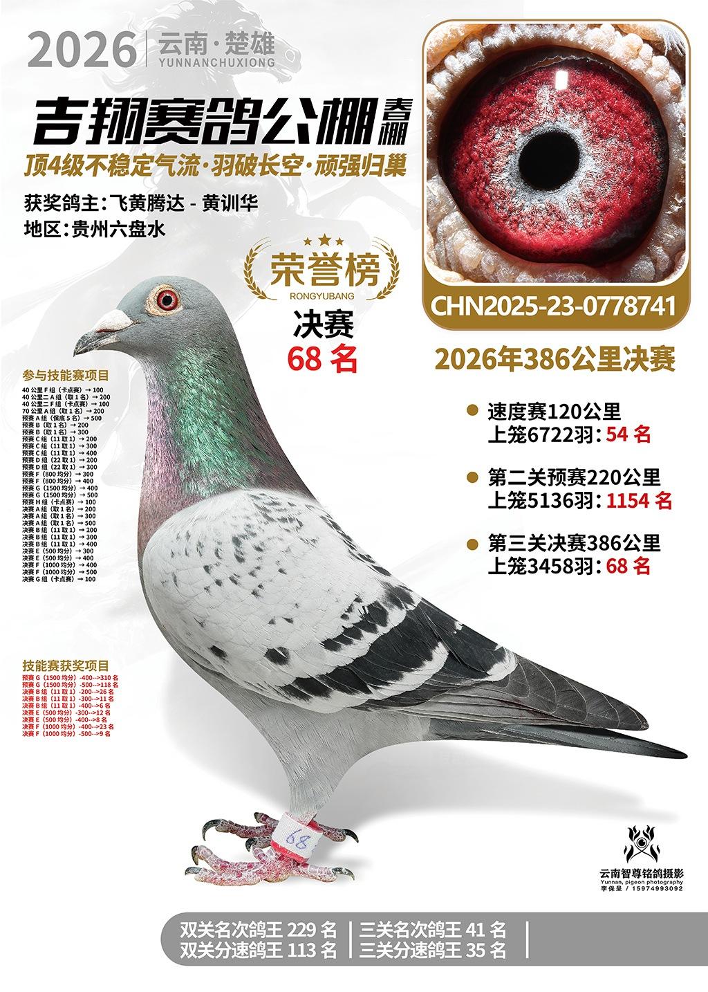 楚雄吉翔公棚(春棚)2026年386公里决赛获奖鸽欣赏
