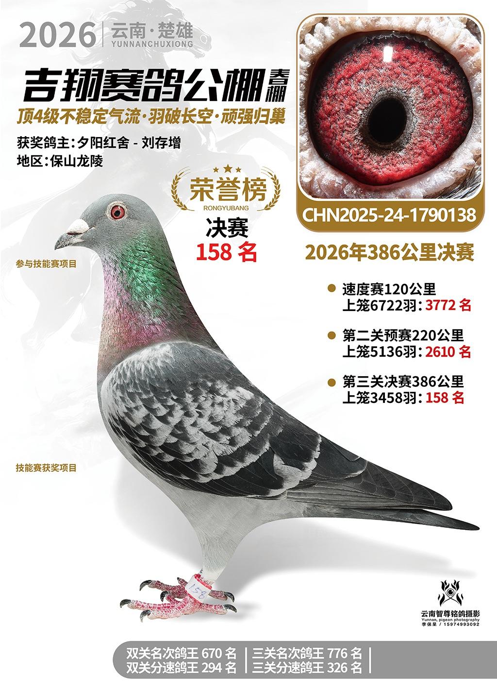 楚雄吉翔公棚(春棚)2026年386公里决赛获奖鸽欣赏
