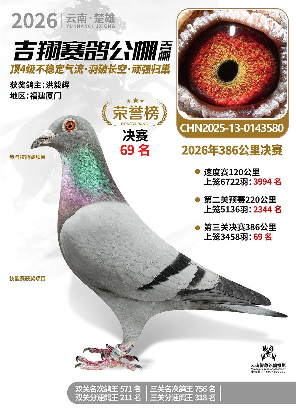 楚雄吉翔公棚(春棚)2026年386公里决赛获奖鸽欣赏