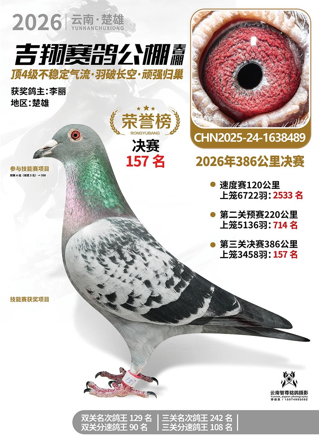 楚雄吉翔公棚(春棚)2026年386公里决赛获奖鸽欣赏