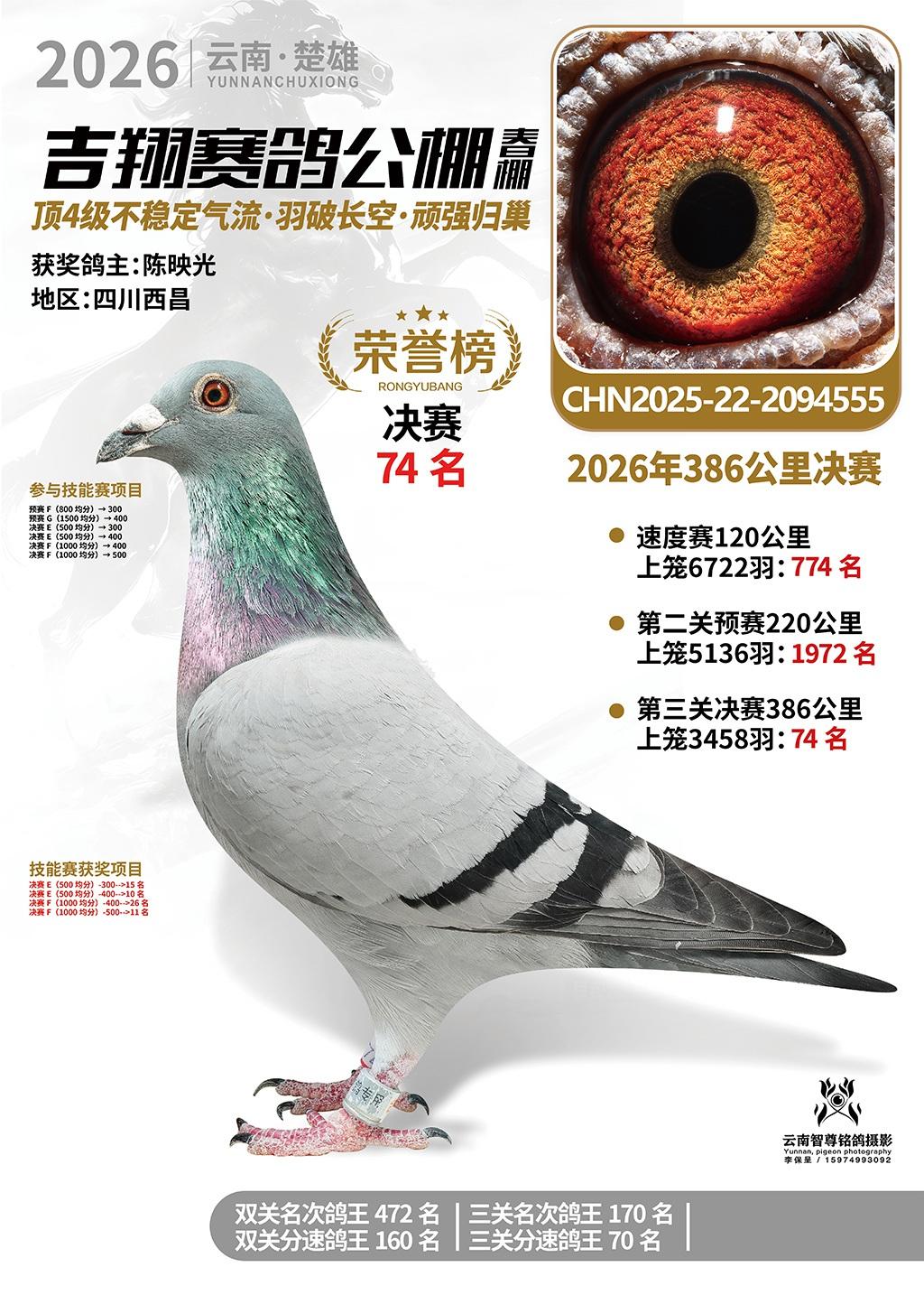 楚雄吉翔公棚(春棚)2026年386公里决赛获奖鸽欣赏