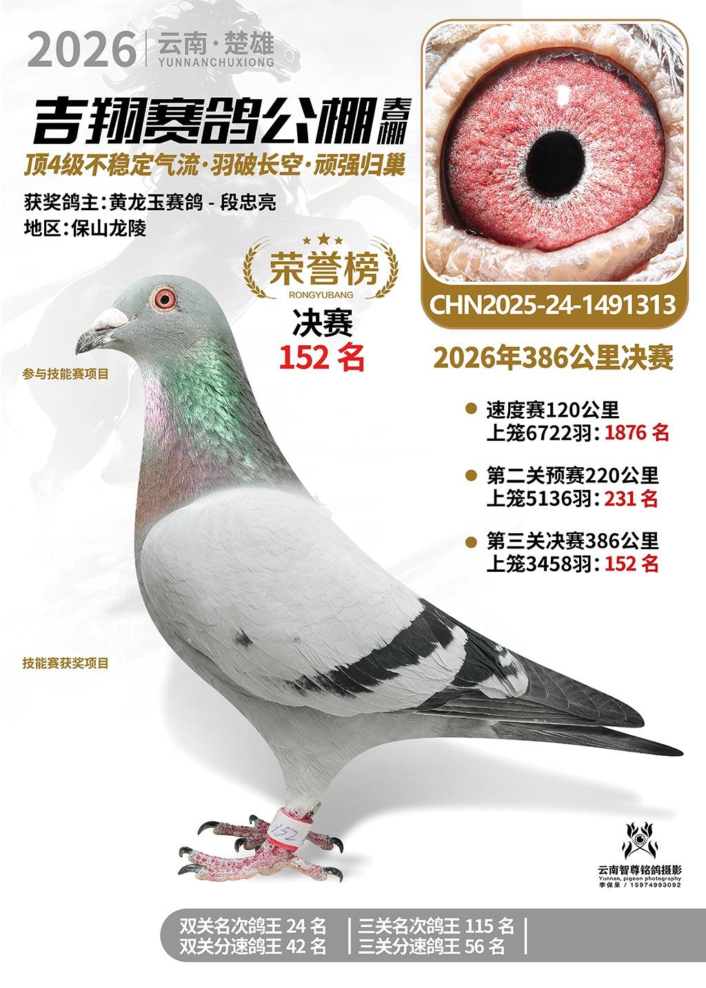 楚雄吉翔公棚(春棚)2026年386公里决赛获奖鸽欣赏