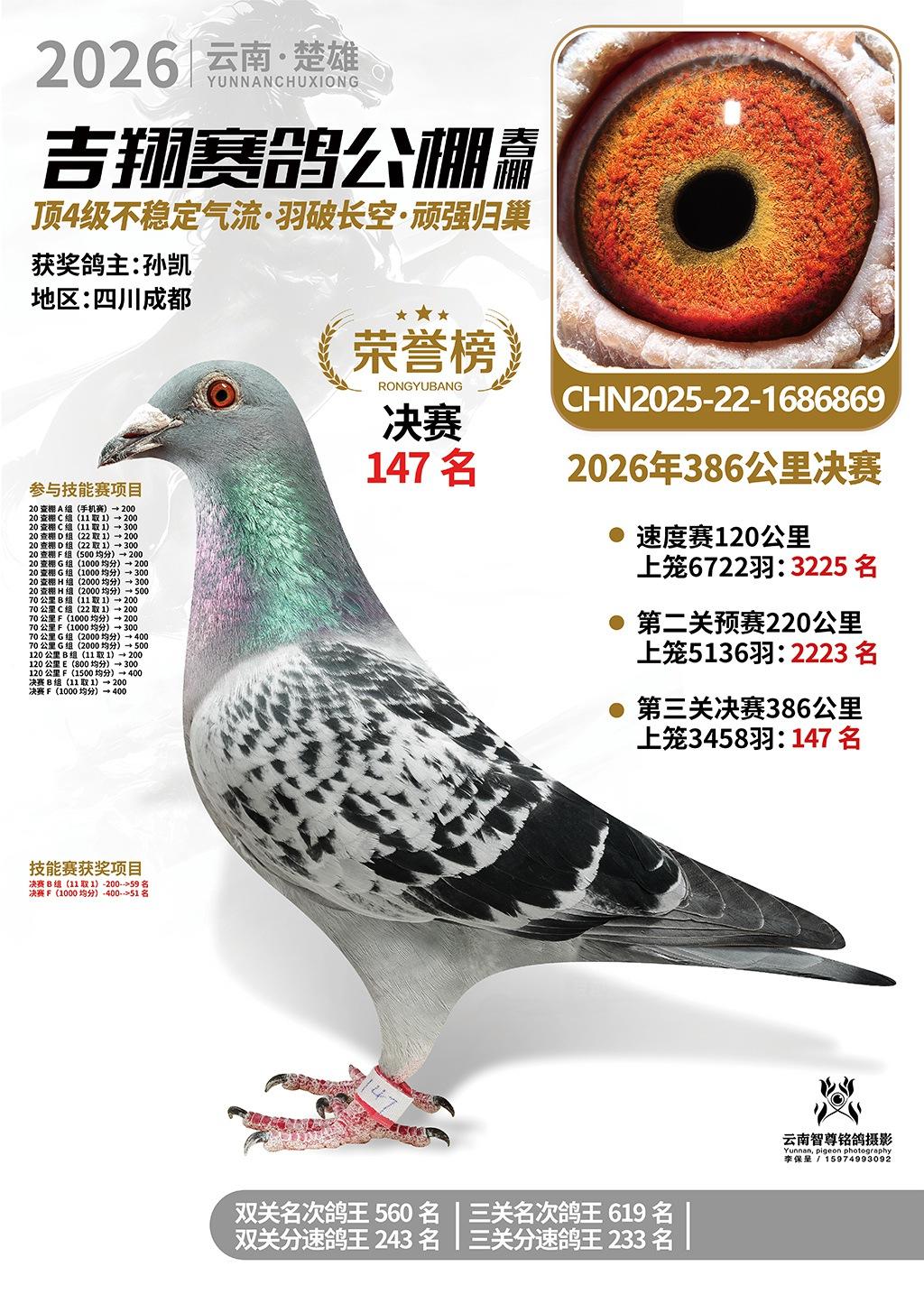 楚雄吉翔公棚(春棚)2026年386公里决赛获奖鸽欣赏