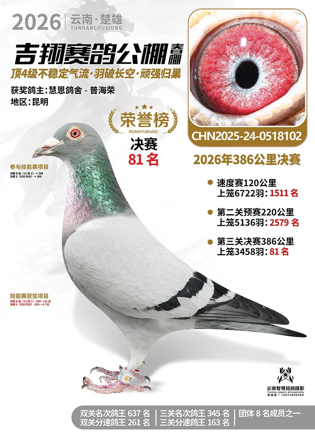 楚雄吉翔公棚(春棚)2026年386公里决赛获奖鸽欣赏