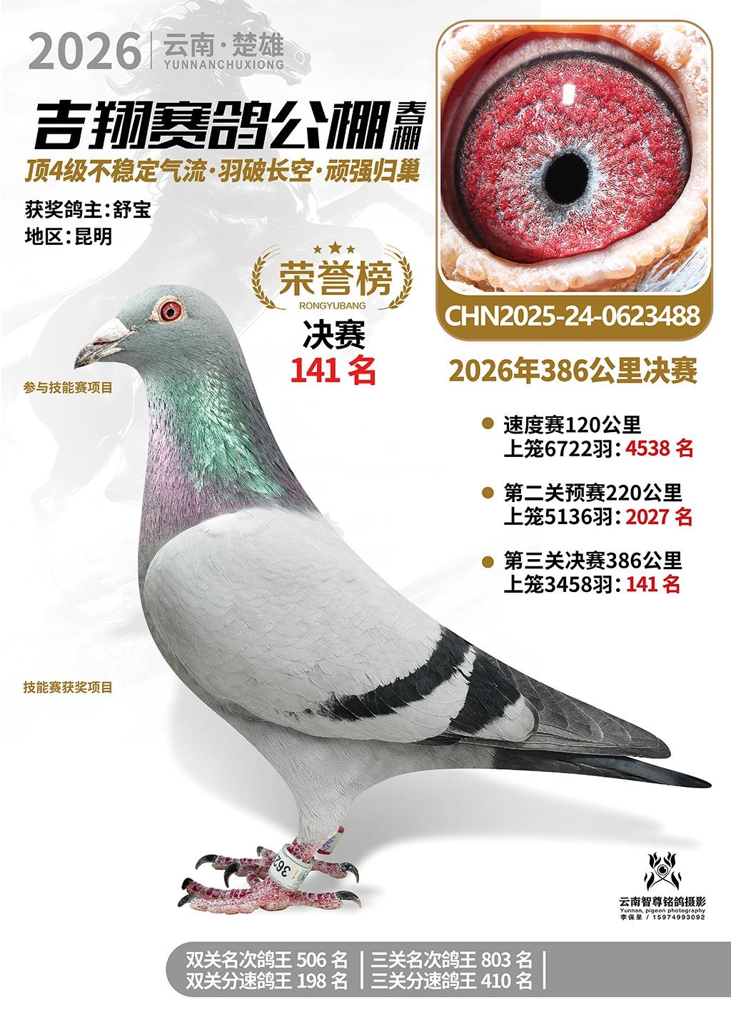 楚雄吉翔公棚(春棚)2026年386公里决赛获奖鸽欣赏