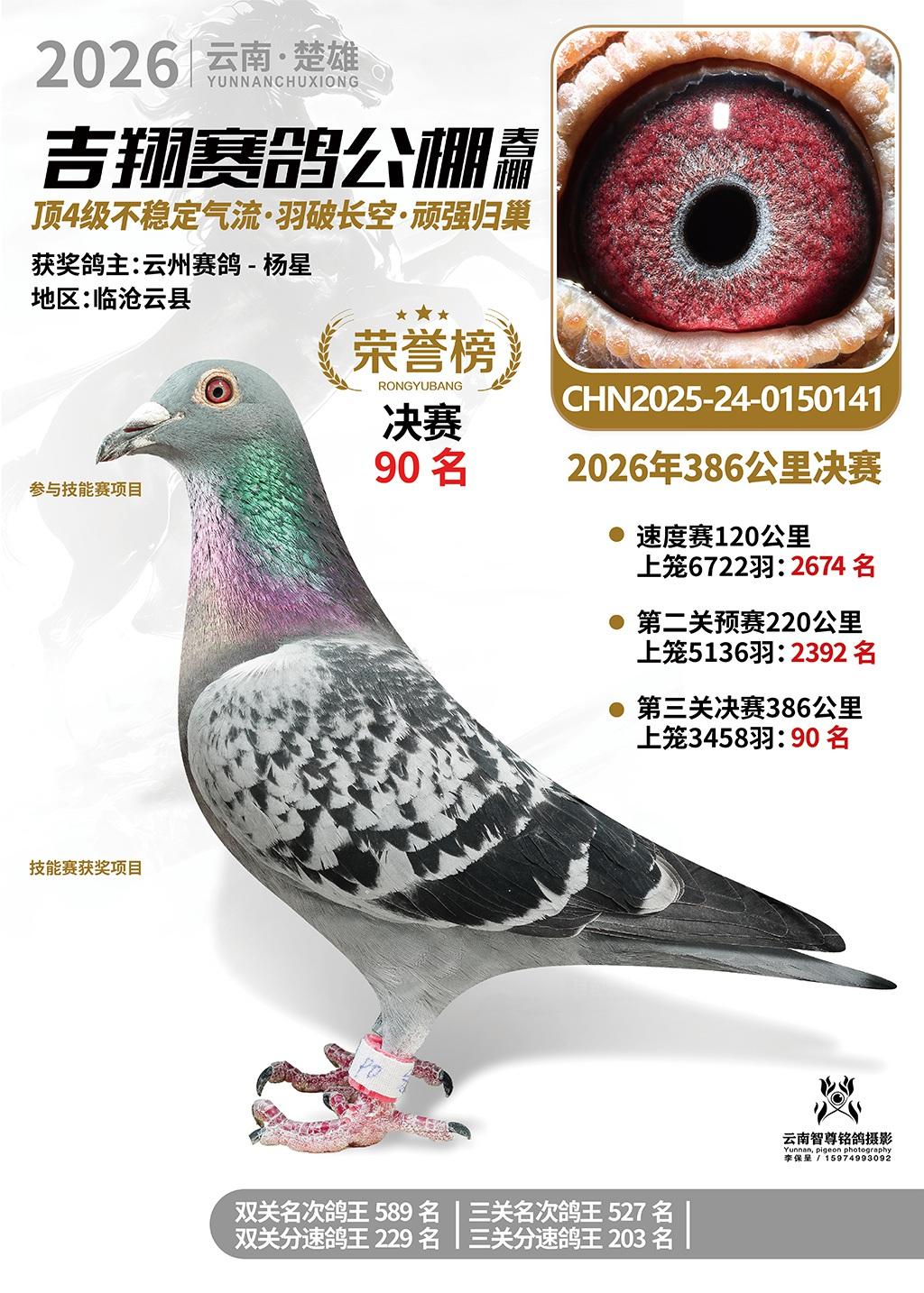楚雄吉翔公棚(春棚)2026年386公里决赛获奖鸽欣赏