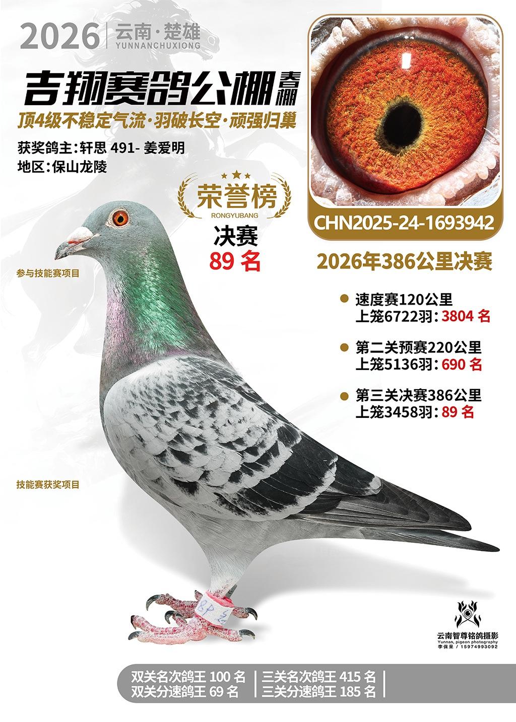 楚雄吉翔公棚(春棚)2026年386公里决赛获奖鸽欣赏