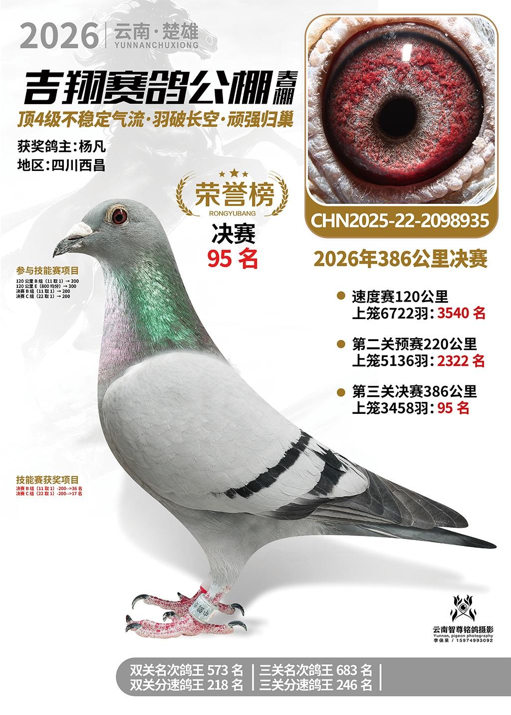楚雄吉翔公棚(春棚)2026年386公里决赛获奖鸽欣赏