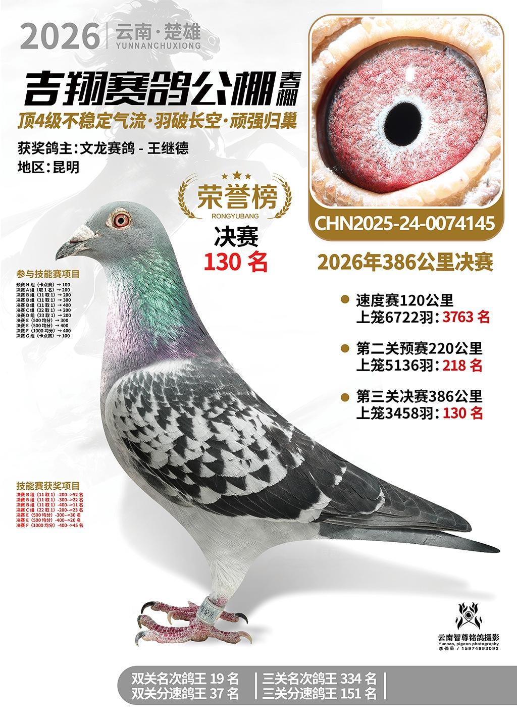 楚雄吉翔公棚(春棚)2026年386公里决赛获奖鸽欣赏