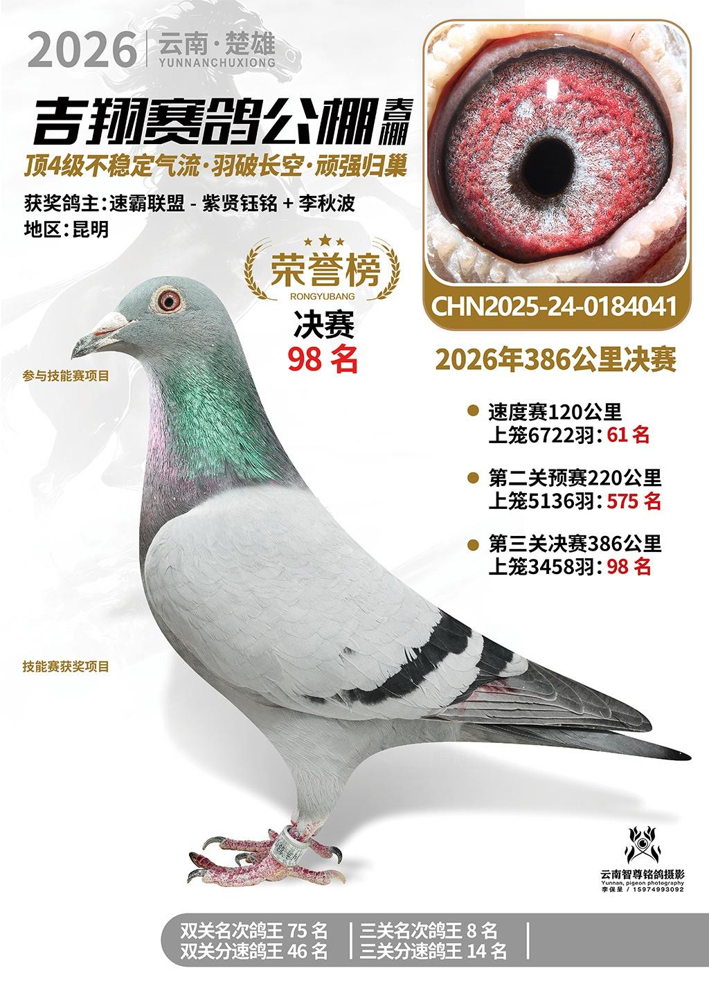 楚雄吉翔公棚(春棚)2026年386公里决赛获奖鸽欣赏