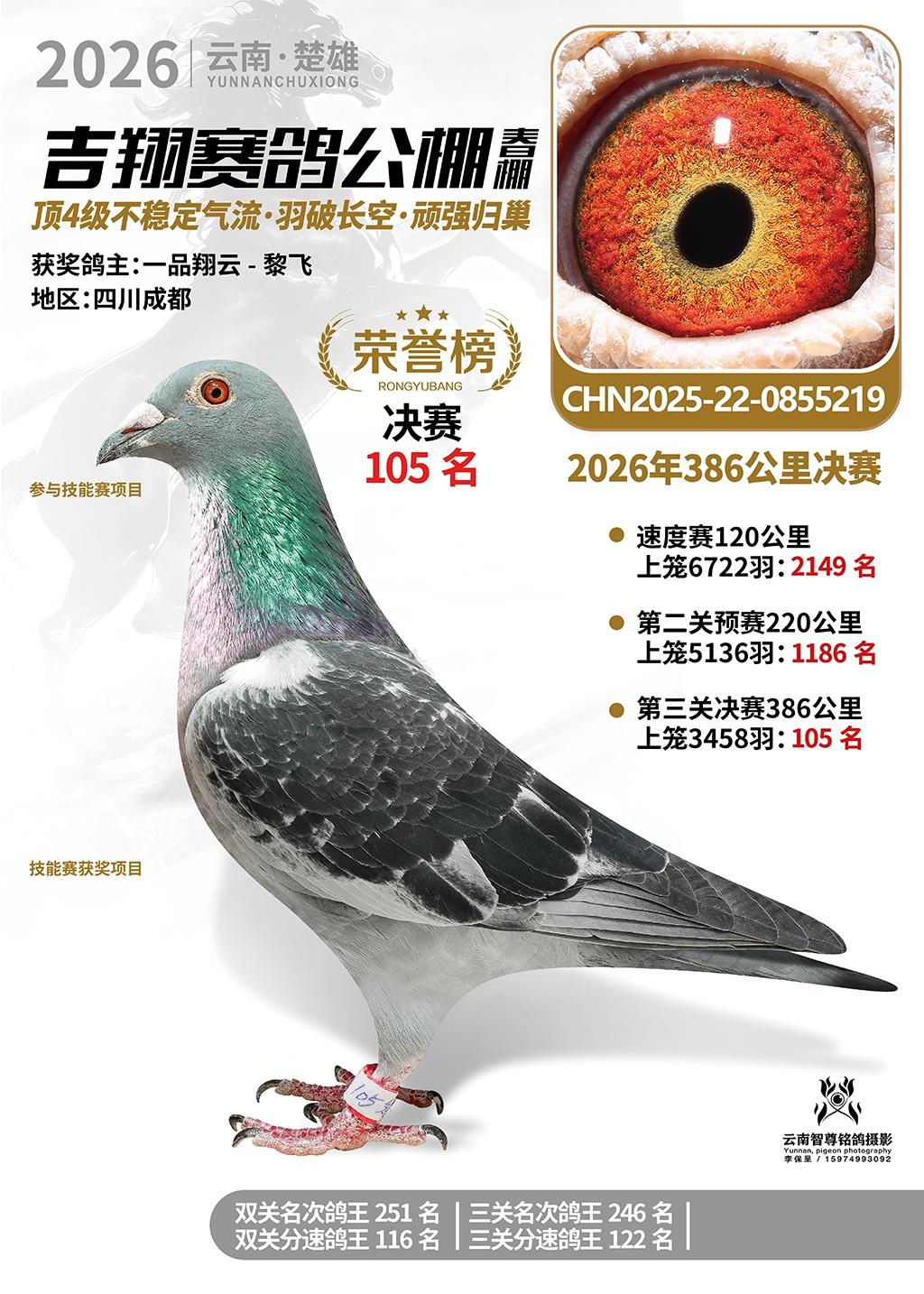 楚雄吉翔公棚(春棚)2026年386公里决赛获奖鸽欣赏