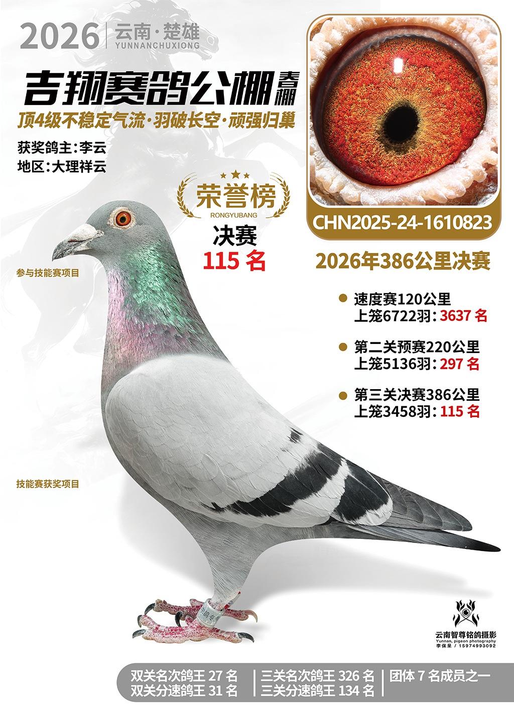 楚雄吉翔公棚(春棚)2026年386公里决赛获奖鸽欣赏