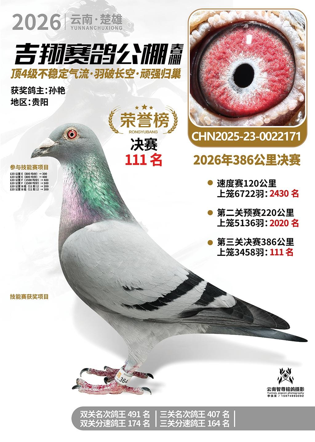 楚雄吉翔公棚(春棚)2026年386公里决赛获奖鸽欣赏