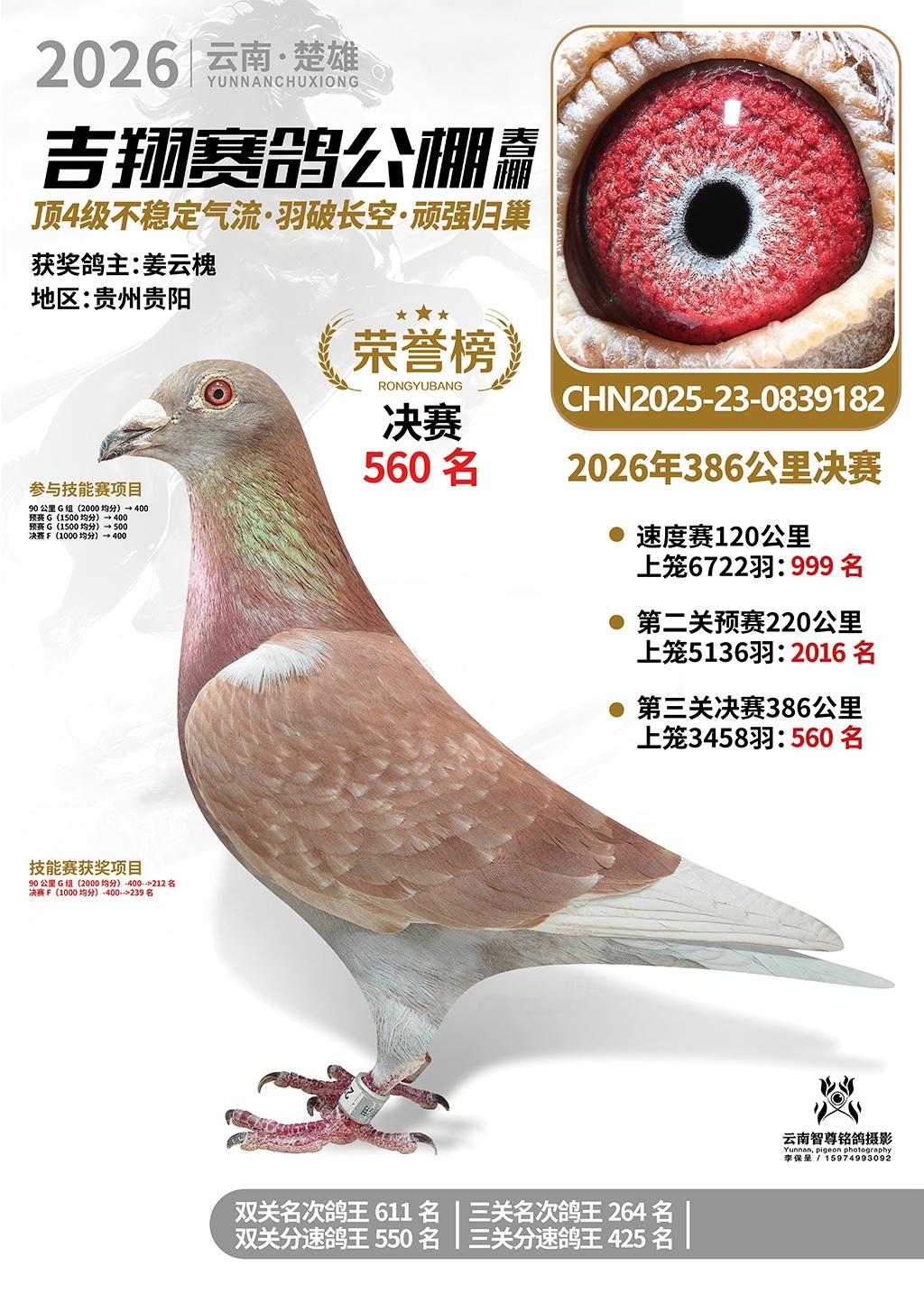 楚雄吉翔公棚(春棚)2026年386公里决赛鸽主自费拍照