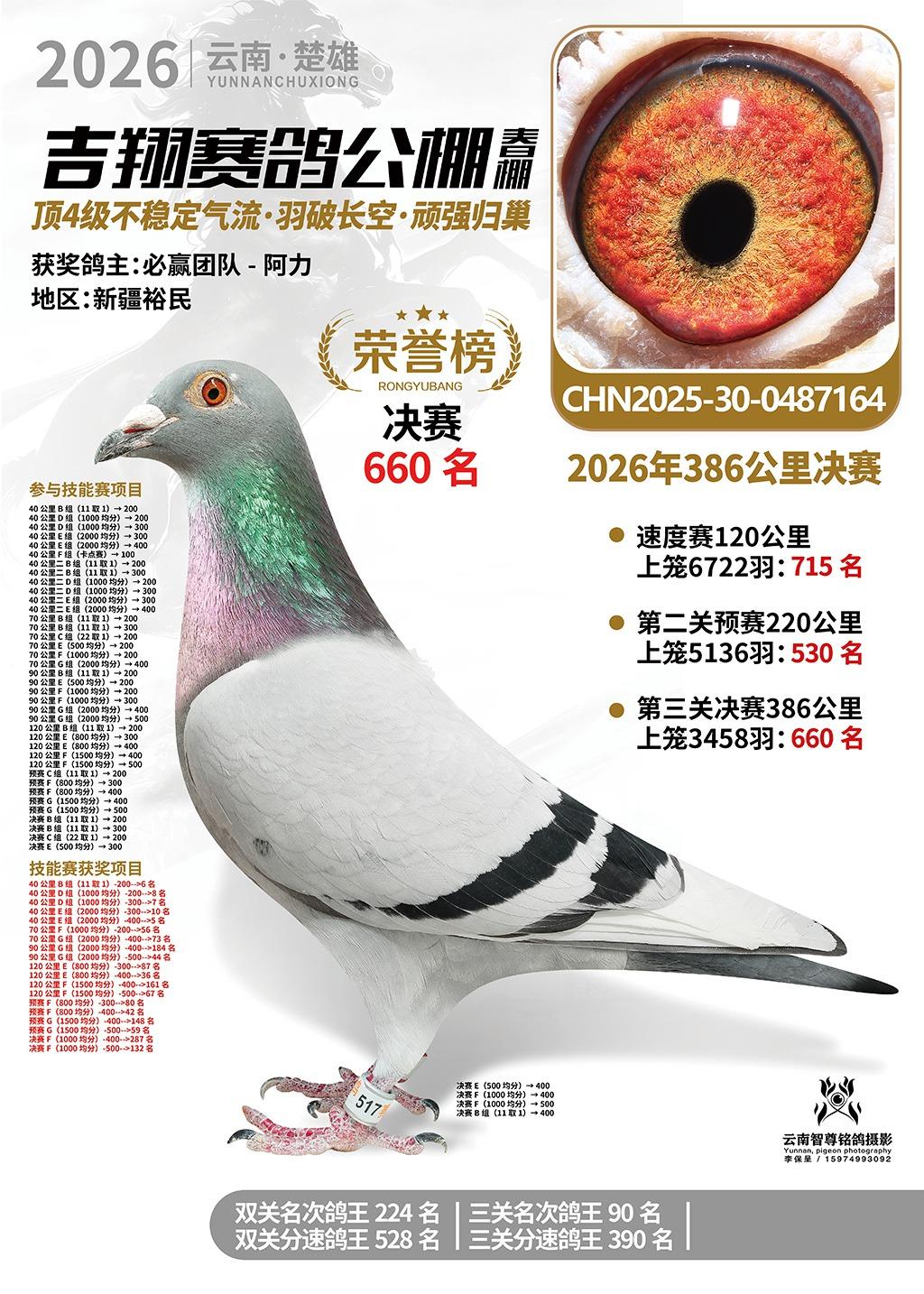 楚雄吉翔公棚(春棚)2026年386公里决赛鸽主自费拍照