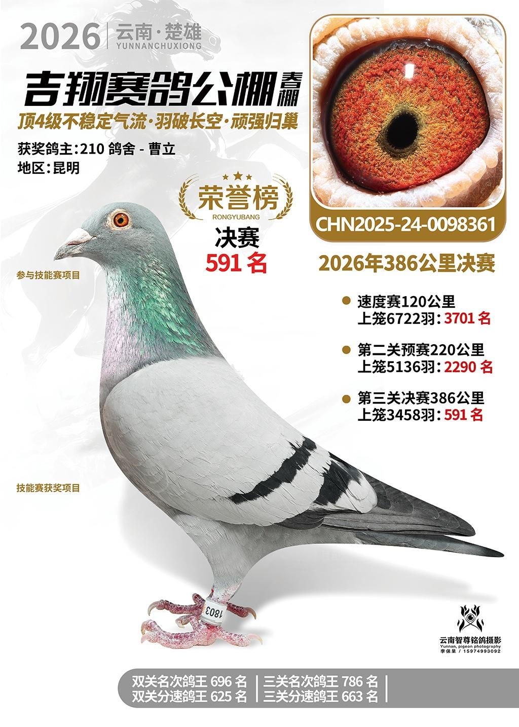 楚雄吉翔公棚(春棚)2026年386公里决赛鸽主自费拍照