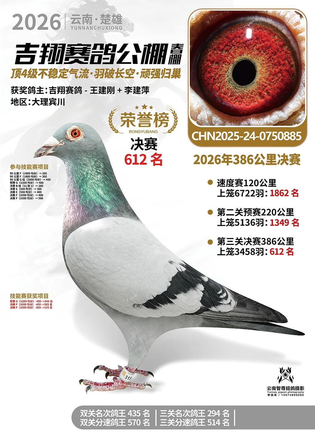 楚雄吉翔公棚(春棚)2026年386公里决赛鸽主自费拍照