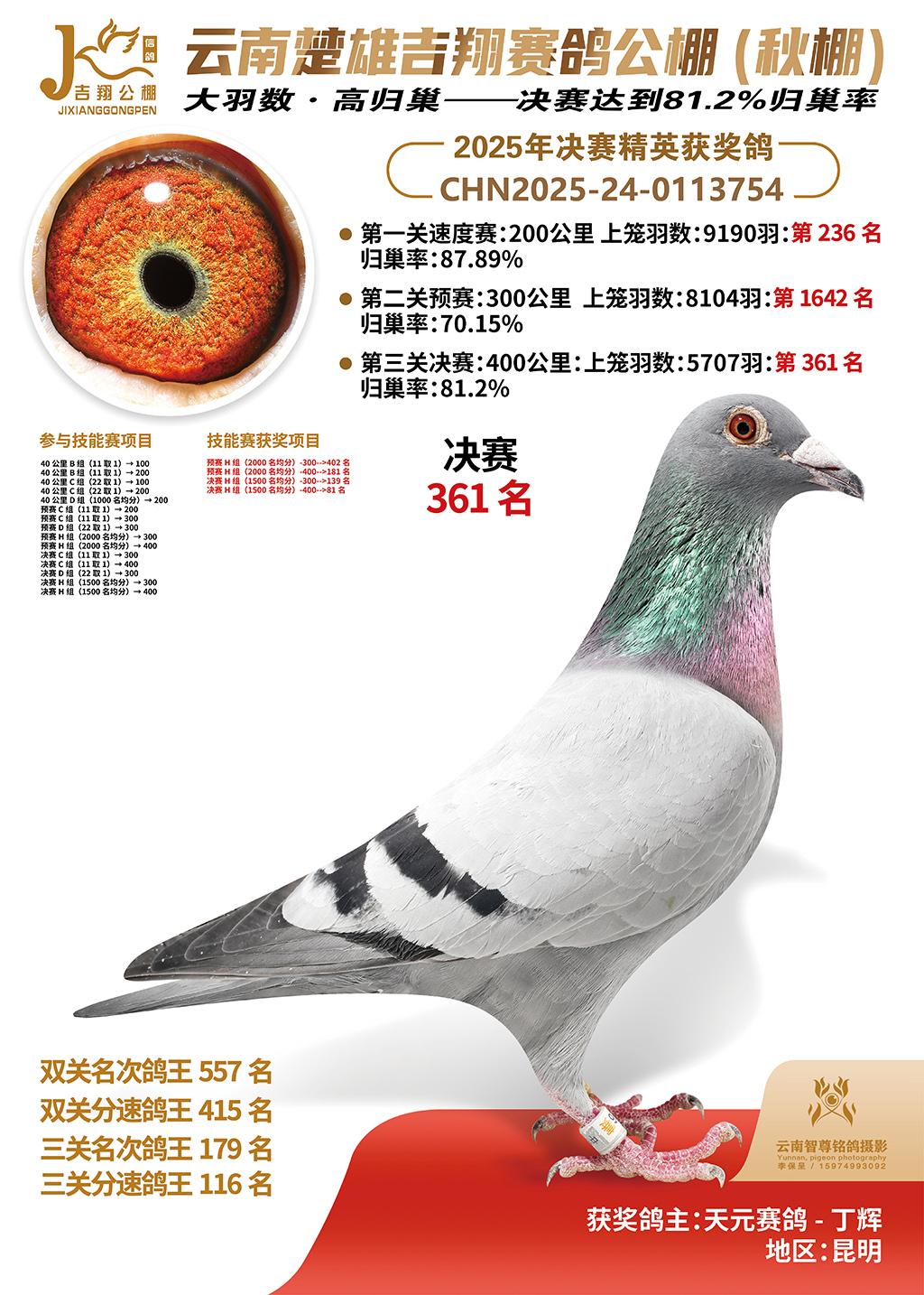 | 鸽主姓名 | 天元赛鸽-丁辉 |