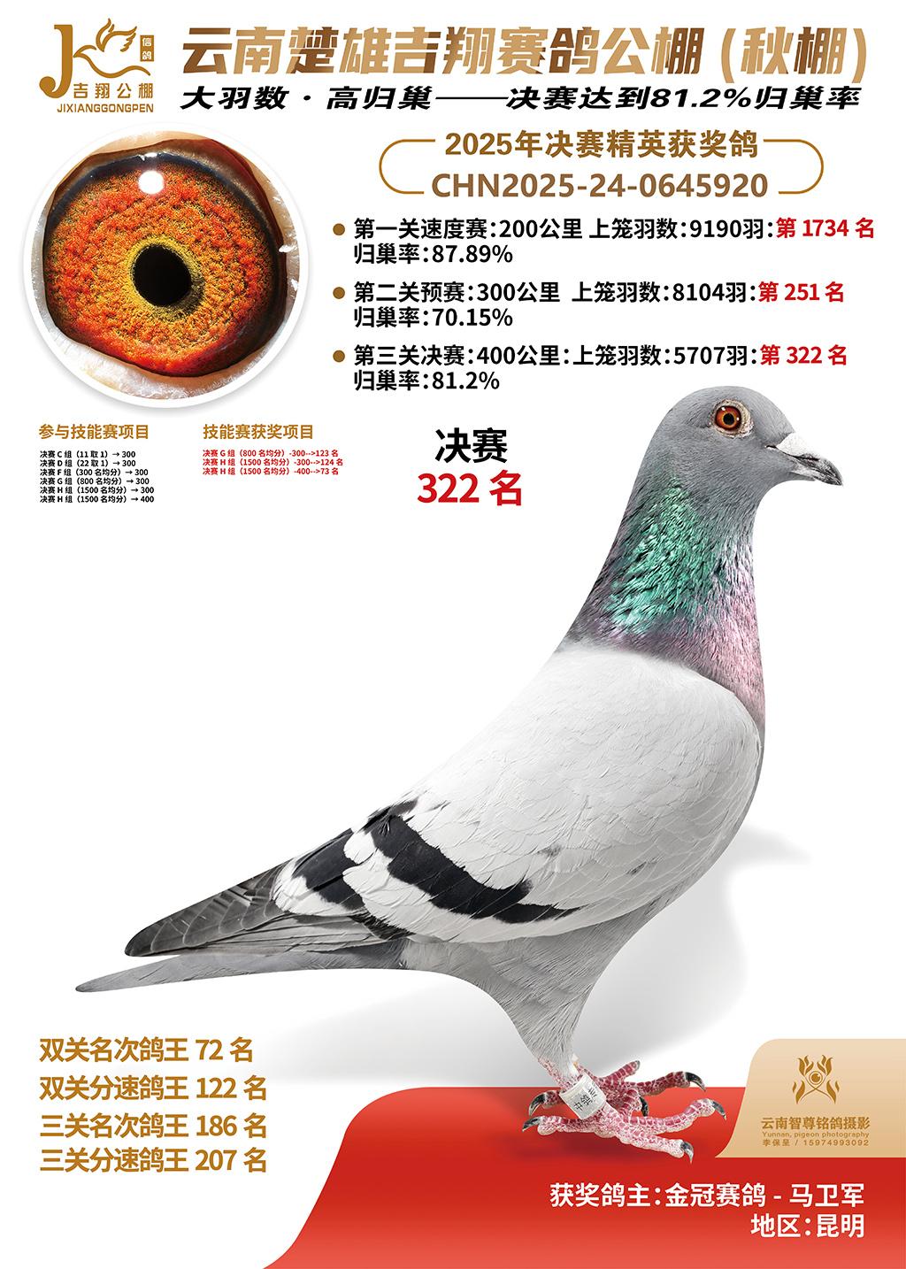 | 鸽主姓名 | 金冠赛鸽-马卫军 |