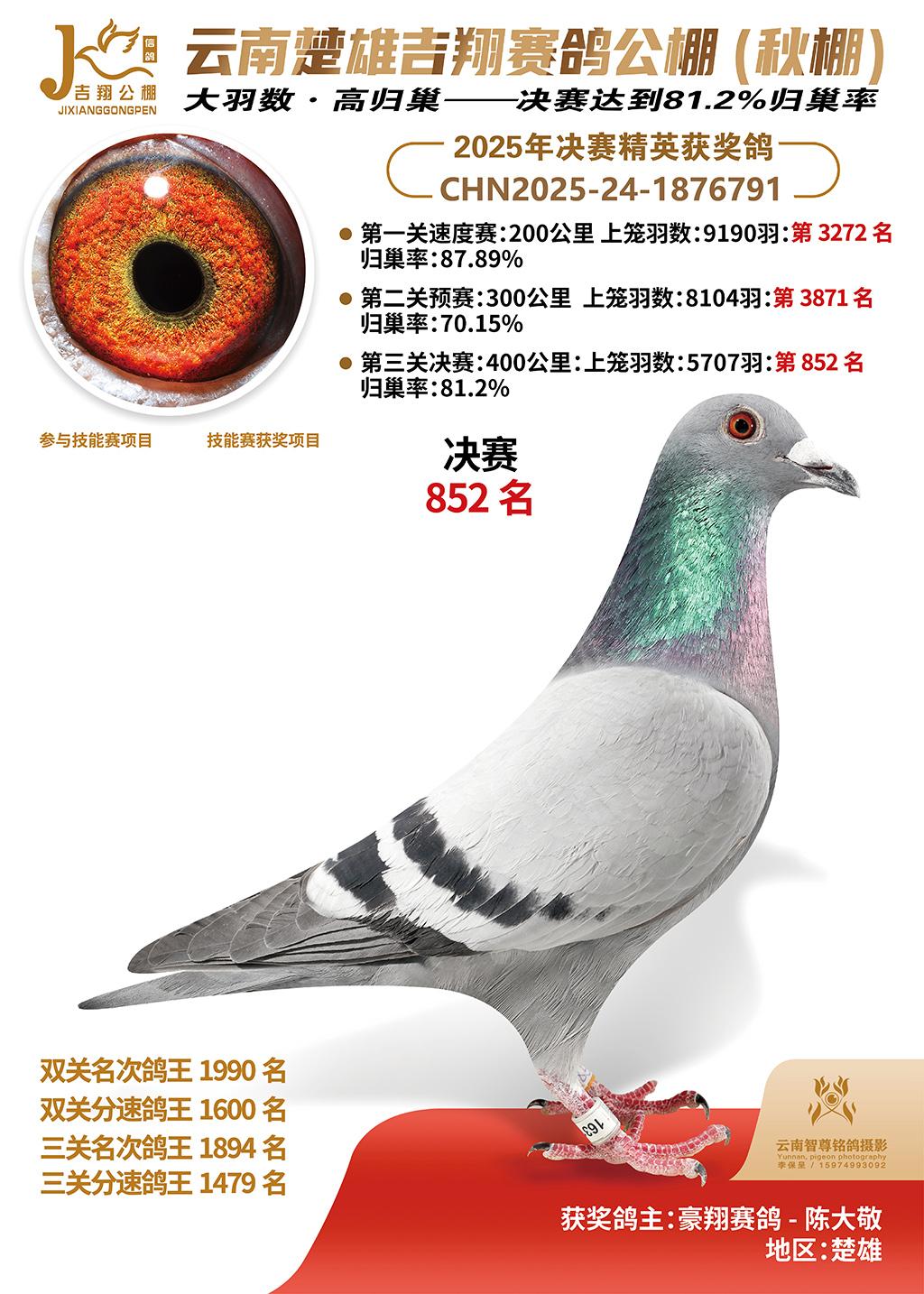 | 鸽主姓名 | 豪翔赛鸽-陈大敬 |